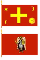 Поруч з традиційним низовим золотим хрестом на малиновому полі, широко використовувався і білий хрест на синьому полі, також червоно-малиновий або синій хрест на білому полі із Святим Миколаєм на зворотній стороні.
