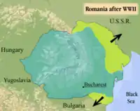 Карта Румунії після Другої світової війни із зазначенням втрачених територій.