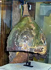 Для захисту голови застосовувались конічно-сферичні шоломи «чернігівського типу», також від XII ст. набувають поширення шоломи з високими втулками для султанів та з наносниками або личинами. Вони були кращими за європейські, експортувалися на захід, а у Польщі, Прусії і в Угорщині викликали наслідування місцевих майстрів. У VIII—IX з'являються кольчуги.