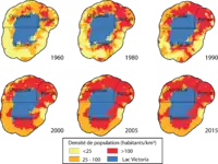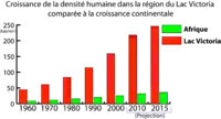 Скупчення населення (246 чол / км 2) дуже сильно контрастує з майже порожніми територіями, що оточують регіон озера Вікторія (малообжиті — західні й південні райони басейну річки Конго та східні й північні степові плато Східної Африки).
