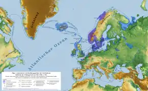 Норвезькі вікінги займають у VIII столітті Шетландські та Оркнейські острови, потім Фарери, Гебриди та Ірландію. Після того як Норвегію об'єднує у 872 році Гаральд Гарноволосий (близько 860-933 роки), багато норвежців залишають батьківщину й переселяються із 874 року до Ісландії, яку відкрили ще у 860 році. Період зайняття землі завершується оформленням права і тінгом 930 року. 982 року норвезькі вікінги відкривають та заселяють Гренландію, близько 1000 року — Америку (Вінландію).