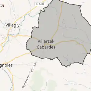 - Розташування муніципалітету Вілларзель-Кабардес на мапі Франції та сусідні муніципалітети
