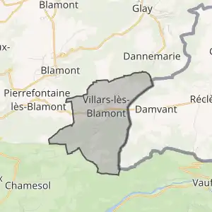 - Розташування муніципалітету Віллар-ле-Бламон на мапі Франції та сусідні муніципалітети