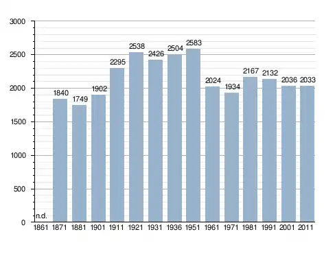 Населення — 2042 особи (2014)[2]. Щорічний фестиваль відбувається 29 вересня. Покровитель — святий Михайло.