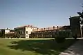 Фасади бічних крил — довга і монотонна відкрита аркада спрощених форм. Візуально аркади закінчувались прямокутним вежами теж спрощених форм. Протилежний фасад від парадного взагалі справляє враження фабричної будівлі, відомої сучасним відвідувачам за прагматичними спорудами невеликих заводів чи фабрик 19 ст., настільки він спрощений.
