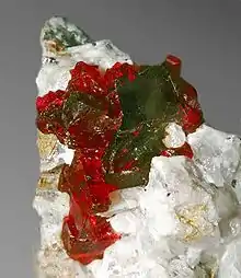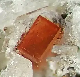 Великий червоний кристал мінералу в материнській породі