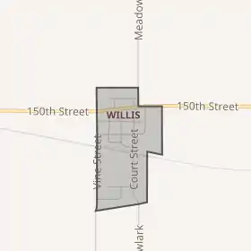 Вілліс розташований за координатами 39°43′22″ пн. ш. 95°30′21″ зх. д. (39.722707, -95.505698)[2]. За даними Бюро перепису населення США в 2010 році місто мало площу 0,44 км², уся площа — суходіл.