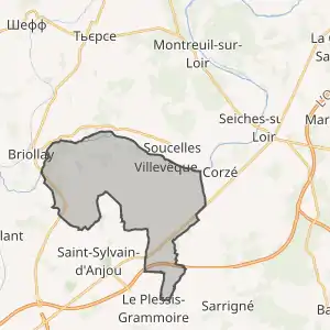 Муніципалітет був розташований на відстані[2] близько 260 км на південний захід від Парижа, 95 км на північний схід від Нанта, 14 км на північний схід від Анже.