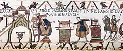 5 січня 1066 року Едуард Сповідник помер, не лишивши прямих спадкоємців. Події, що передували його смерті та які призвели до завоювання Англії, зображено на знаменитому килимі з Байо і являють собою нормандську версію подій. Також ці події змальовано у низці часописів, в першу чергу в «Діяннях герцога Вільгельма» Гільйома де Пуатьє. Відповідно до цієї версії, у 1064 році Едуард, відчуваючи наближення смерті, відрядив свого наймогутнішого васала Гарольда Годвінсона до Вільгельма, щоб він присягнув останньому як спадкоємцю англійського престолу. Однак дорогою Гарольд потрапив у полон до графа Гі I де Понтьє, звідки його звільнив Вільгельм.