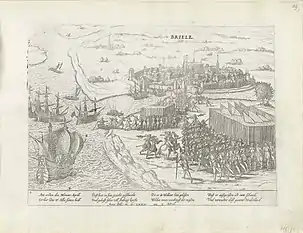 Гравер Франс Гоґенберг (1540—1590) «Військове захоплення у іспанців міста Бріль повсталими вояками нідерландців першого квітня 1572 року», офорт, друк до 1590. Музей Бойманс ван Бенінгена, Роттердам