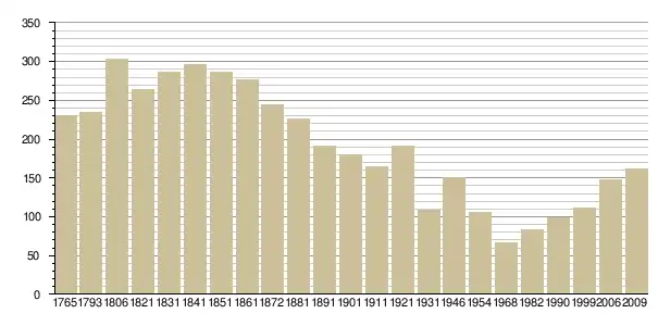 Динаміка населення (Baratier, Duby & Hildesheimer pour l’Ancien Régime ; Insee[3], EHESS[4] pour les chiffres issus des recensements légaux ):