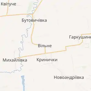 Село Вільне розташоване на правому березі річки Комишувата Сура, вище за течією примикає село Кринички, нижче за течією на відстані 1,5 км розташоване село Бутовичівка, на протилежному березі — село Михайлівка. По селу протікає пересохлий струмок із загатою.