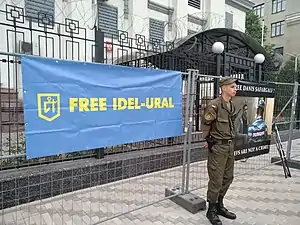 Банер «Вільного Ідель-Уралу» на паркані посольства РФ у Києві. 2018 р.