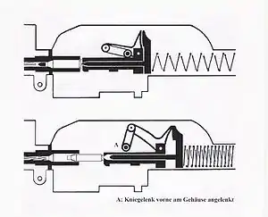 IV, V — тиск в стволі падає, тертя в патроннику різко знижується, і гільза відходить назад під дією залишкового тиску і інерції, штовхаючи затвор, цим приводячи в дію автоматику перезарядження