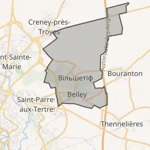 - Розташування муніципалітету Вільшетіф на мапі Франції та сусідні муніципалітети