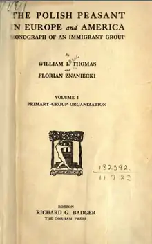 - «Польський селянин у Європі й Америці. Монографія по іммігрантських групах» (англ. "The Polish Peasant in Europe and America. Monograph of an immigrant group", у співавторстві з Ф. В. Знанецьким; 1918–1921);