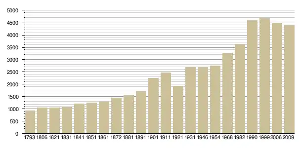 Динаміка населення (base Cassini de l'EHESS pour les nombres retenus jusque 1962[3], base Insee à partir de 1968 (population sans doubles comptes puis population municipale à partir de 2006)[4] · [5] ):