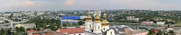 Історично склалися такі частини міста як Вишенька, Замостя, Каліча, Тяжилів, ВПЗ (місцевість), Академмістечко, Слов'янка, Сабарів, Пирогове, Малі Хутори, Старе місто, Хутір Шевченка, Єрусалимка, П'ятничани, Корея, Поділля, Свердловський масив, Військове містечко, Садки, Крива, Царське село, Академічний, Масложир, станом на осінь 2018 триває приєднання до міста селища Десна.[7][8]