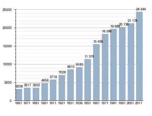 Станом на 31 грудня 2014 року в муніципалітеті офіційно проживали 4472 іноземці з 63 країн, серед них 439 громадян країн Євросоюзу та 184 громадяни України.[4]