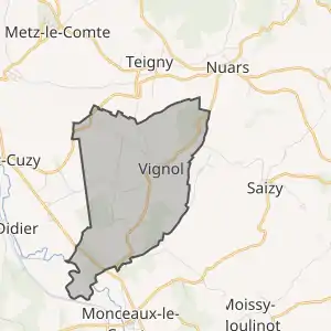 - Розташування муніципалітету Віньоль на мапі Франції та сусідні муніципалітети