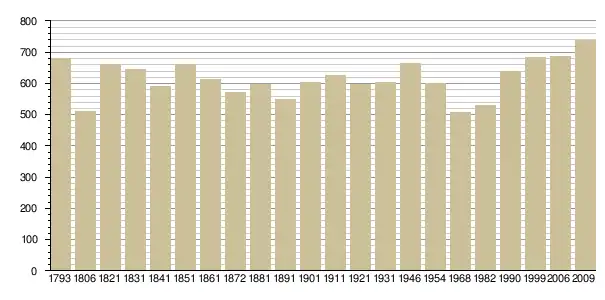Динаміка населення (base Cassini de l'EHESS pour les nombres retenus jusque 1962[3], base Insee à partir de 1968 (population sans doubles comptes puis population municipale à partir de 2006)[4] · [5] ):