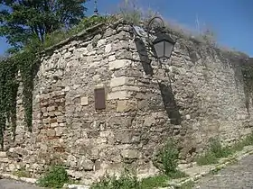 Від першої, наріжної будівлі лишилася лише південна кам'яна стіна заввишки 6 м з боку вулиці та з м — з подвір'я. У центральній частині стіни можна побачити залишки замурованої напівкруглої брами, з обидвох боків якої розташовані віконні прорізи, замуровані у вигляді контрфорсів.