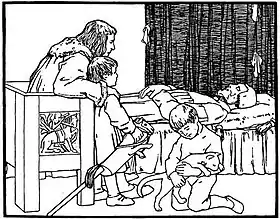 Старий король, лежачи на смертному ложі, покликав свого слугу Йоганнеса і попросив його піклуватись про свого сина, який перейме по ньому владу, і вірно йому служив. Король також велів Йоганнесу, щоб той не впроваджував його сина до одної з кімнат замку, де висів портрет королівни з Золотоверхого-Палацу. Король боявся, що його син, побачивши її красу, закохається в королівну і накличе на себе небезпеку. Йоганнес пообіцяв старому королю все виконати.