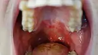 Інкубаційний період триває кілька днів. Потім у пацієнта настає підвищення температури до 39-40 °С, можливі багаторазова блювота, діарея, поява висипу на руках, ногах, грудях та обличчі. Пацієнт відчуває головний біль, слабкість. Уражається слизова глотки, що ускладнює прийом їжі. При стандартному перебігу хвороби її симптоми зникають за один-два тижні.