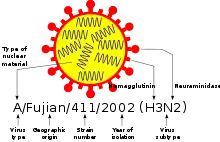 Подальший поділ, у випадку вірусу типу «A», проводиться згідно підтипів (серотипів) поверхневих білків (глікопротеїнів) гемаглютиніну (HA) і нейрамінідази (NA)[3].
