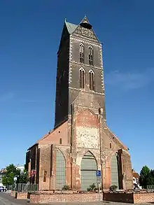 До війни належала до числа найбільших північнонімецьких церков, виконаних у стилі цегляної готики. Її архітектор, Йоганн Грот, взяв за зразок трехнефную базиліку церкви Марії в Любеку. У квітні 1945 під час бомбардування основну будівлю було сильно пошкоджено. Руїни були остаточно підірвані в 1960 році. Від церкви залишилася лише висока башта (81 м), на якій висять 9 дзвонів XVI—XVII століть.