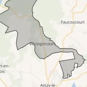 - Розташування муніципалітету Віссіньїкур на мапі Франції та сусідні муніципалітети