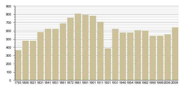 Динаміка населення (base Cassini de l'EHESS pour les nombres retenus jusque 1962[3], base Insee à partir de 1968 (population sans doubles comptes puis population municipale à partir de 2006)[4] · [5] ):