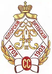 - Полковий прапор простий із написом: «1703—1903» з Олександрівською ювілейною стрічкою.