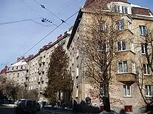 - Житлові будинки Пенсійного закладу у стилі раннього функціоналізму на вулиці Стрийській, 36, 38, 40, 42, (1927). Вперше у Львові застосовано центральне опалення.[29]