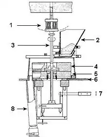 4 — посад (жорна разом з механізмом обертання) з кошем над ним