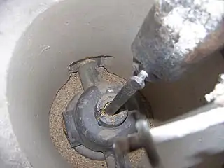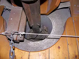 Нижній кінець верхнього веретена в прогорниці верхнього жорна