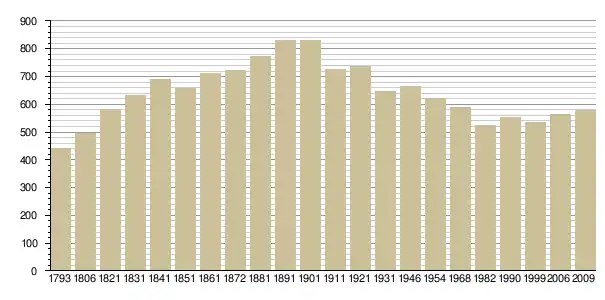Динаміка населення (base Cassini de l'EHESS pour les nombres retenus jusque 1962[3], base Insee à partir de 1968 (population sans doubles comptes puis population municipale à partir de 2006)[4] · [5] ):