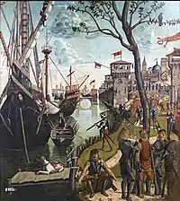 - «Приїзд англійських послів до двору короля Бретані», бл. 1495. Галерея Академії, Венеція