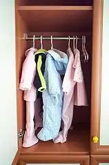 Одяг вішається на гачки, вушка, на плічка (які теж називаються вішаком) чи скріпляється защіпками. Одяг, що зберігається на вішаку, не зминається.