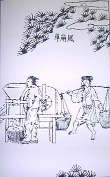У стародавньому Китаї вперше була застосована віялка з обертовим вентилятором, який створював повітряний потік для відділення полови. Про це написав у 1313 китайський першодрукар Ван Чжень у праці по сільському господарству «Нін Шу»[4].