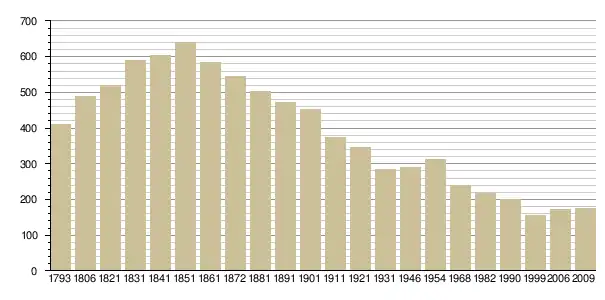 Динаміка населення (base Cassini de l'EHESS pour les nombres retenus jusque 1962[3], base Insee à partir de 1968 (population sans doubles comptes puis population municipale à partir de 2006)[4] · [5] ):