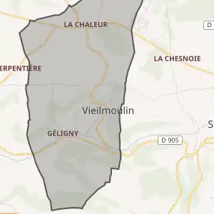 - Розташування муніципалітету В'єймулен на мапі Франції та сусідні муніципалітети