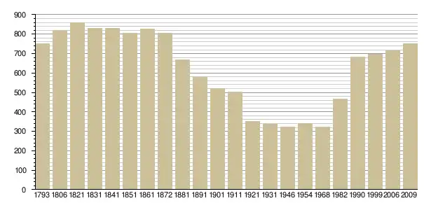 Динаміка населення (base Cassini de l'EHESS pour les nombres retenus jusque 1962[3], base Insee à partir de 1968 (population sans doubles comptes puis population municipale à partir de 2006)[4] · [5] ):