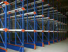 В'їзний стелаж (глибинний, набивний, drive-in) — це палетна металева конструкція, при роботі з якою техніка заїжджає прямо вглиб стелажної системи