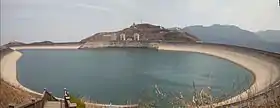 | Довжина греблі | 503 (верхній резервуар), 230 (нижній резервуар) м | |||