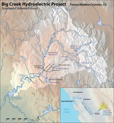 У 1910-х роках на Біг-Крік (ліва притока Сан-Хоакін) створили водосховище Хантінгтон-Лейк з площею поверхні 5,8 км2 та об'ємом 110 млн м3, котре живило ГЕС Біг-Крік 1 та наступну за нею станцію Біг-Крік 2. А наступного десятиліття реалізували масштабний проект перекидання до цієї водойми додаткового ресурсу зі сточища Соуз-Форк-Сан-Хоакін (велика ліва притока Сан-Хоакін), при цьому більша його частина спрямовувалась далі до резервуару Shaver Lake, спорудженого на Stevenson Creek (ще один лівий доплив Сан-Хоакін). З цієї водойми, яка має площу поверхні 8,8 км2 та об'єм у 167 млн м3, ресурс повертається назад у сточище Біг-Крік до станції Біг-Крік 2А.