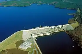В межах проекту долину річки перекрили комбінованою греблею висотою 62 метри та шириною по гребеню 6 метрів, яка включає центральну бетонну частину довжиною 574 метри (потребувала 841 тис. м3 матеріалу) та бічні земляні ділянки загальною довжиною 802 метри (створені із 2,2 млн м3 породи). Разом з допоміжною дамбою довжиною 335 метрів гребля утримує водосховище площею поверхні від 97,6 км2 до 128,6 км2 при об'ємі 1835 млн м3, з яких 156 млн м3 є корисним об'ємом для виробництва електроенергії (забезпечується коливанням рівня між позначками 143,3 та 144,8 метра НРМ).
