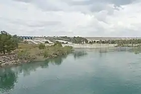 В межах проекту річку перекрили земляною греблею висотою 82 метри, довжиною 894 метри та товщиною по гребеню 12 метрів, яка потребувала 17,5 млн м3 матеріалу. На час будівництва воду відвели за допомогою двох тунелів загальною довжиною 1,8 км з діаметром 8,5 метрів. Гребля утримує водосховище з площею поверхні 81,9 км2 та об’ємом 2126 млн м3 (корисний об'єм 720 млн м3) в якому припустиме коливання рівня поверхні між позначками 115 та 125 метрів НРМ (у випадку повені останній показник може збільшуватись до 126,5 метра НРМ, а об’єм зростає ще на 139 млн м3).