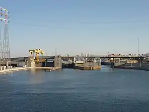 Біля лівого берега розташовані два судноплавні шлюзи розмірами 160х17 метрів з мінімальною глибиною 3 метри.[2] Центральна частина споруди містить 11 водопропускних шлюзів, а між ними та судноплавними розмістили машинний зал руслової гідроелектростанції.