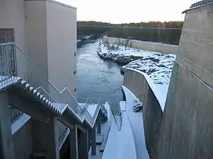 Русло річки неподалік від її початку (виходу з озера Оулуярві) перекрили греблею висотою 15 метрів, яка складається з двох водоскидних шлюзів та машинного залу. Останній обладнаний турбінами типу Каплан загальною потужністю 55 МВт, які при напорі від 11 до 14 метрів[2][3][4] забезпечують виробництво 207 млн кВт-год на рік.[5]